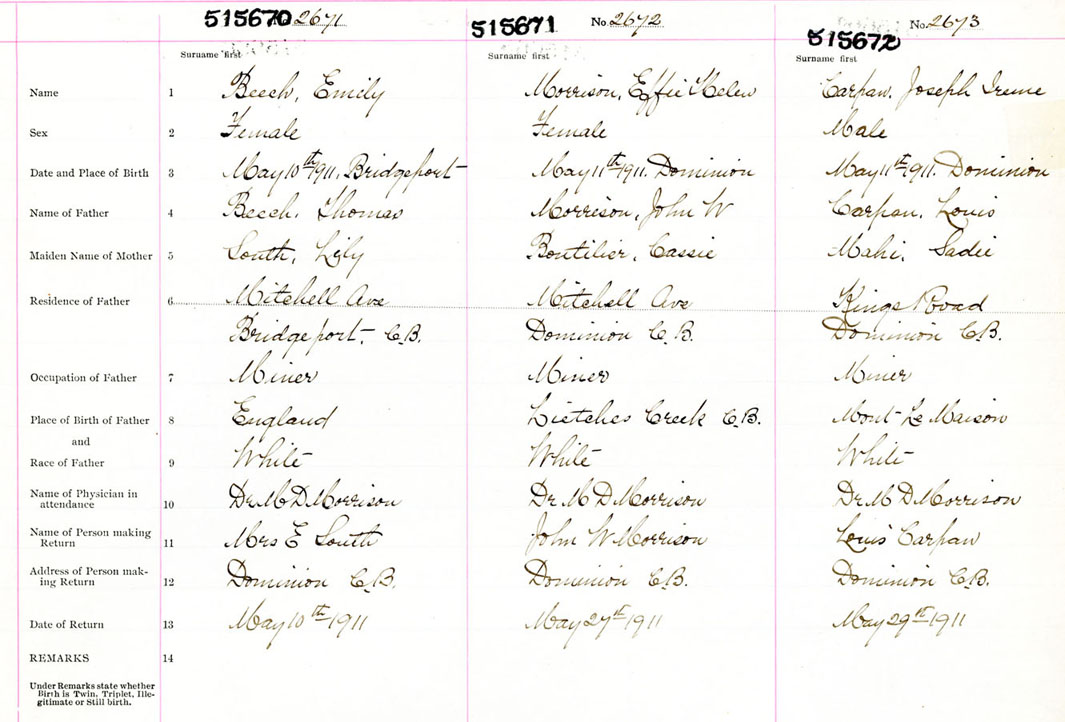 Female Birth Registration: Year: 1911 number: 51500670