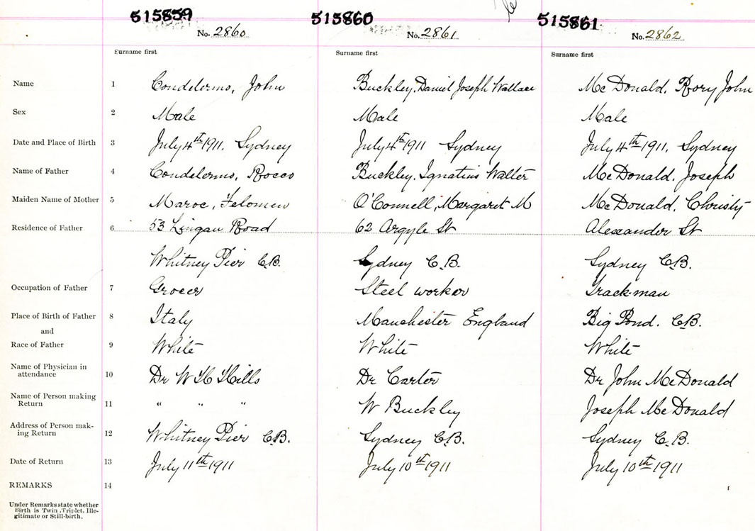 Male Birth Registration: Year: 1911 number: 51500859