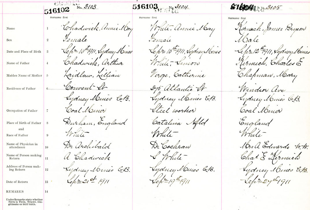 Male Birth Registration: Year: 1911 number: 51600104