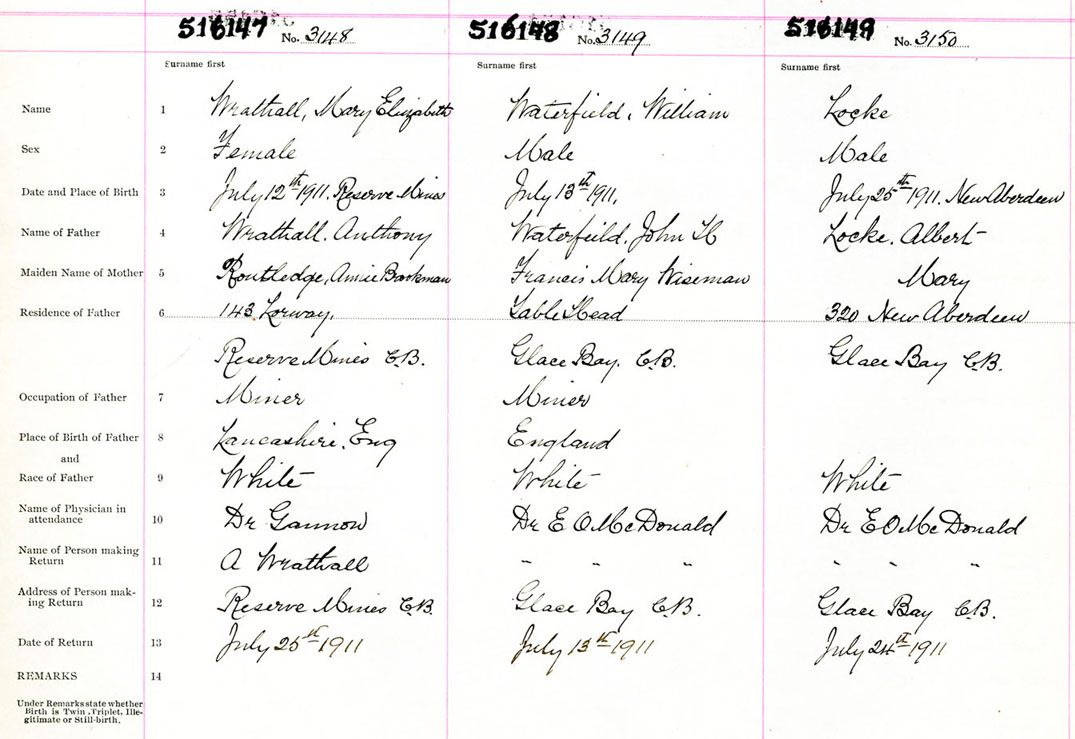 Male Birth Registration: Year: 1911 number: 51600149