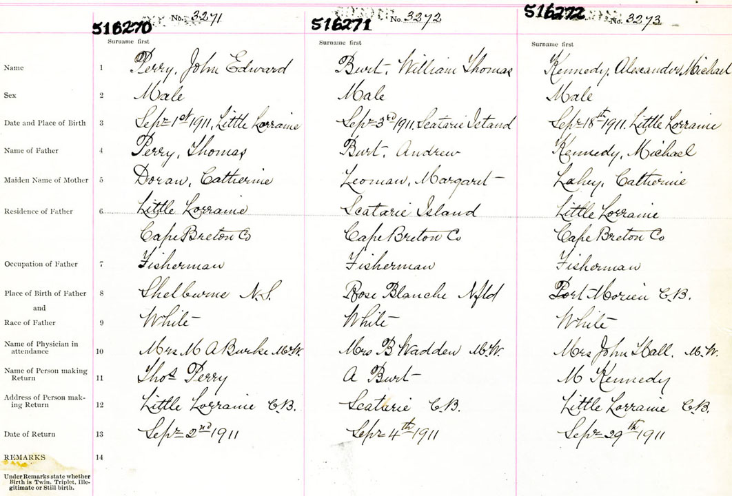 Male Birth Registration: Year: 1911 number: 51600272