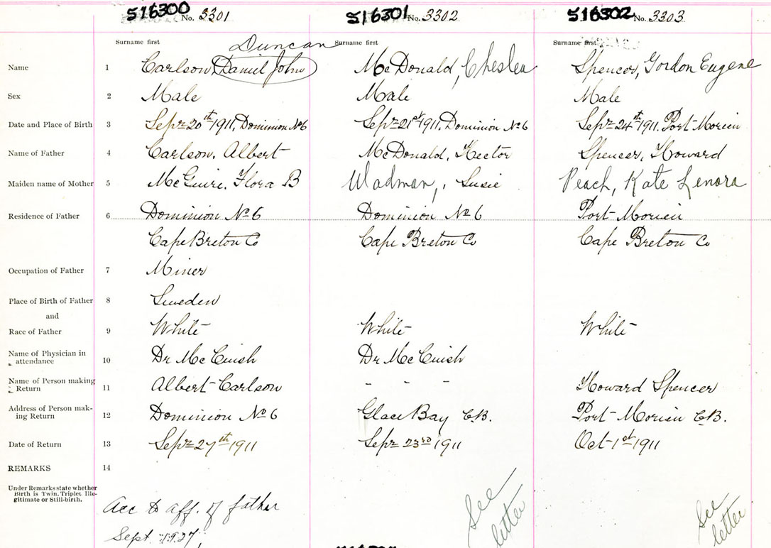 Male Birth Registration: Year: 1911 number: 51600300