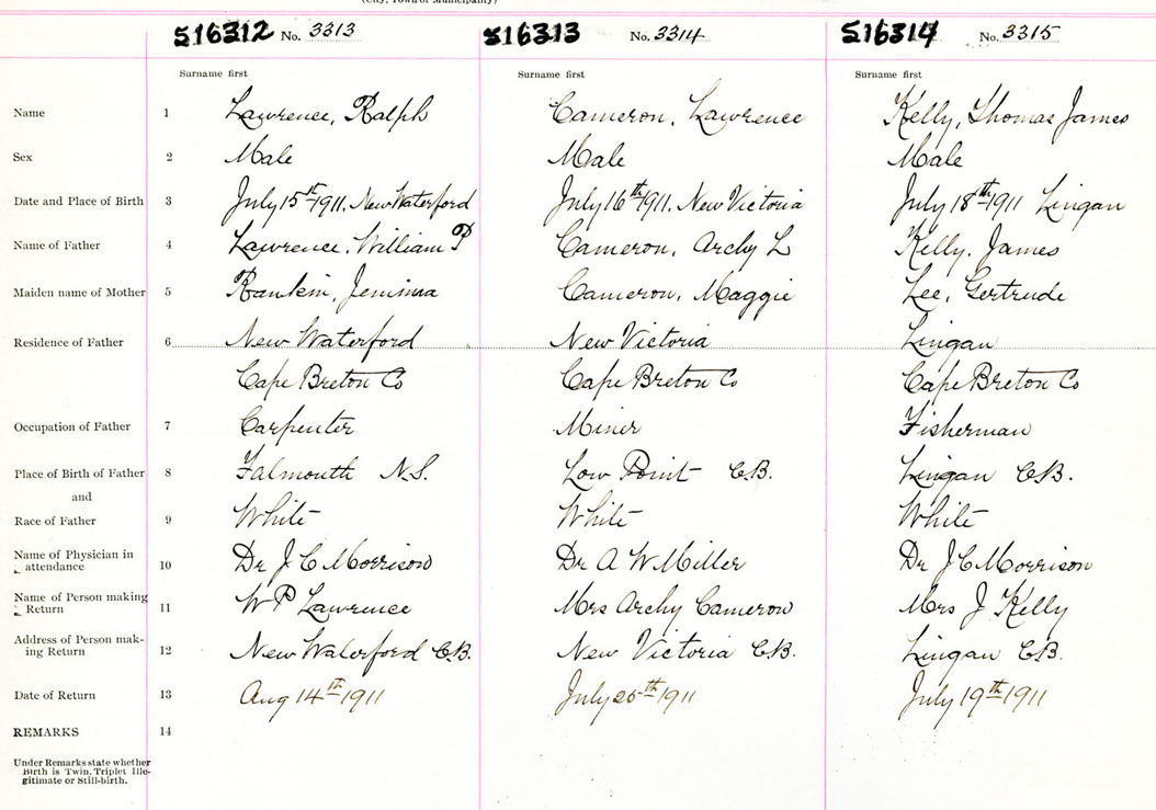 Male Birth Registration: Year: 1911 number: 51600312