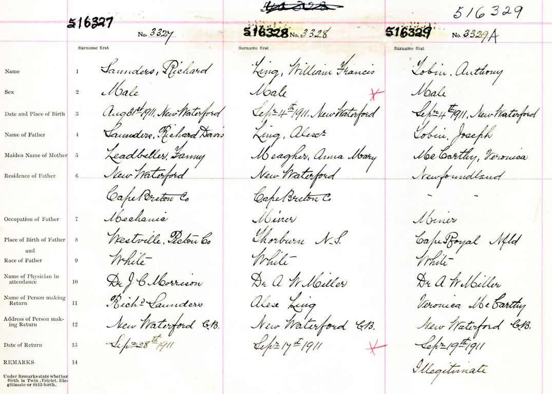 Male Birth Registration: Year: 1911 number: 51600327