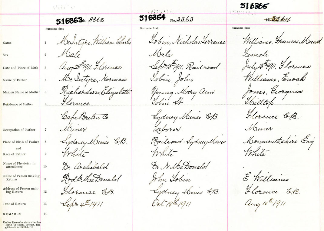 Male Birth Registration: Year: 1911 number: 51600363