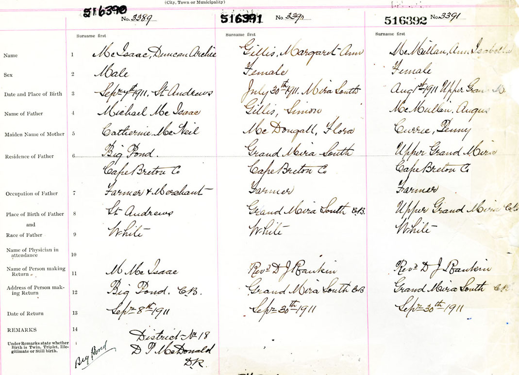 Male Birth Registration: Year: 1911 number: 51600390