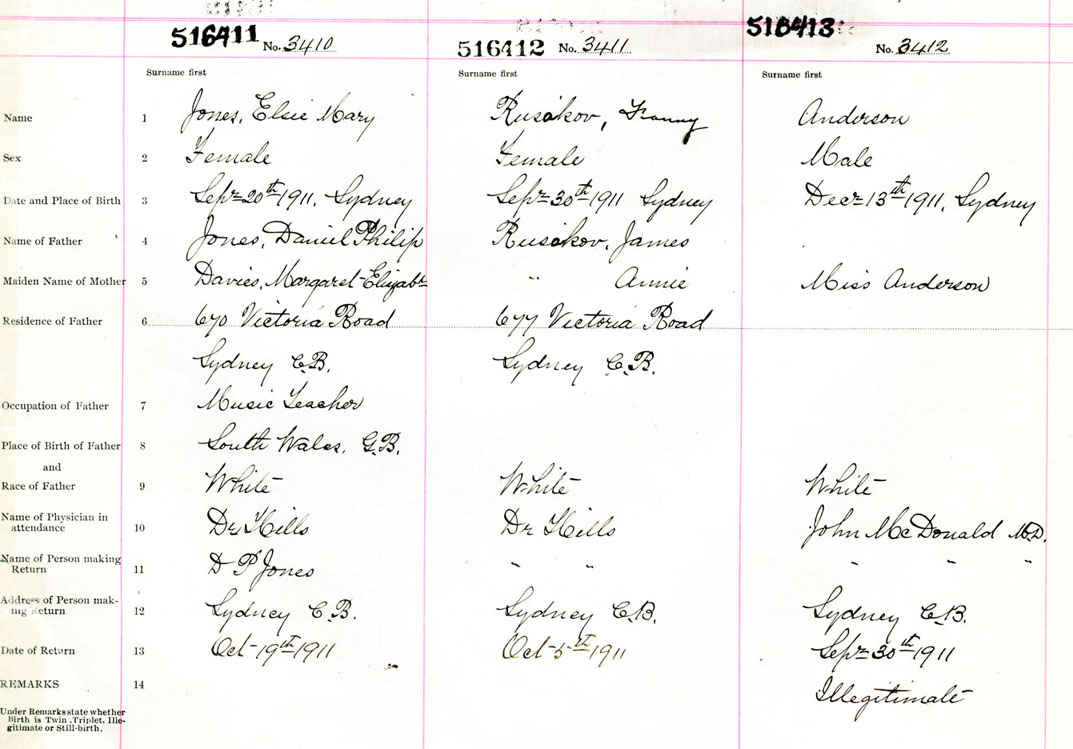 Male Birth Registration: Year: 1911 number: 51600413