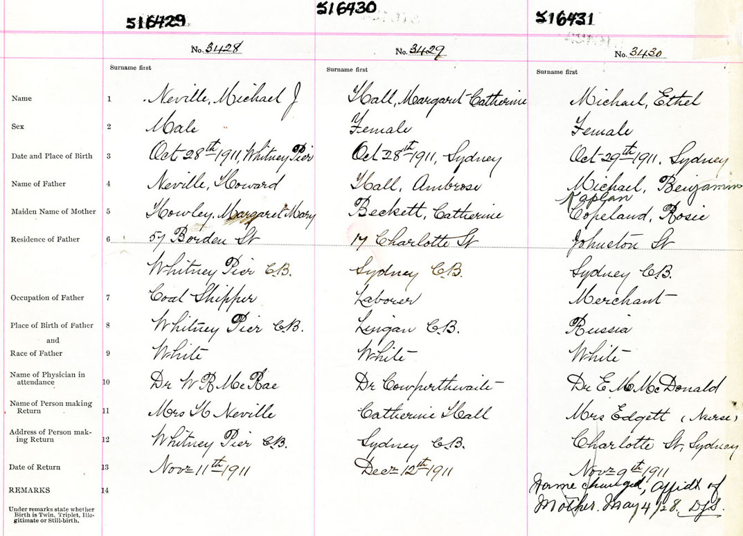 Female Birth Registration: Year: 1911 number: 51600431
