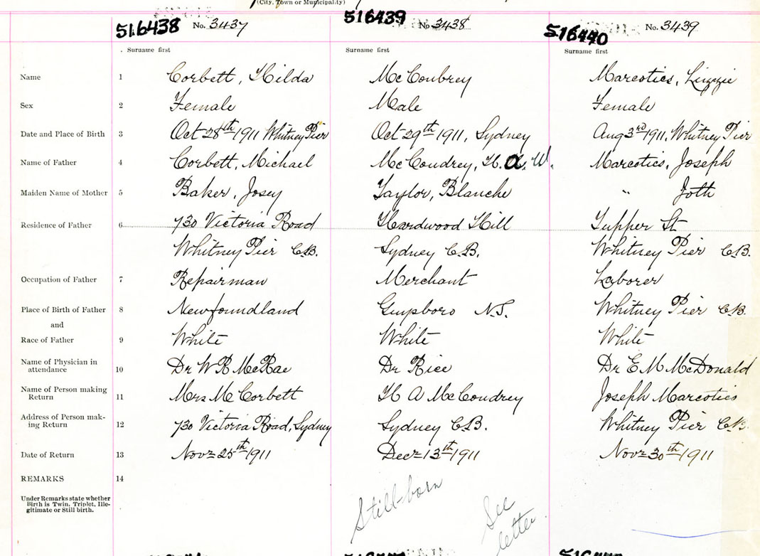 Female Birth Registration: Year: 1911 number: 51600440