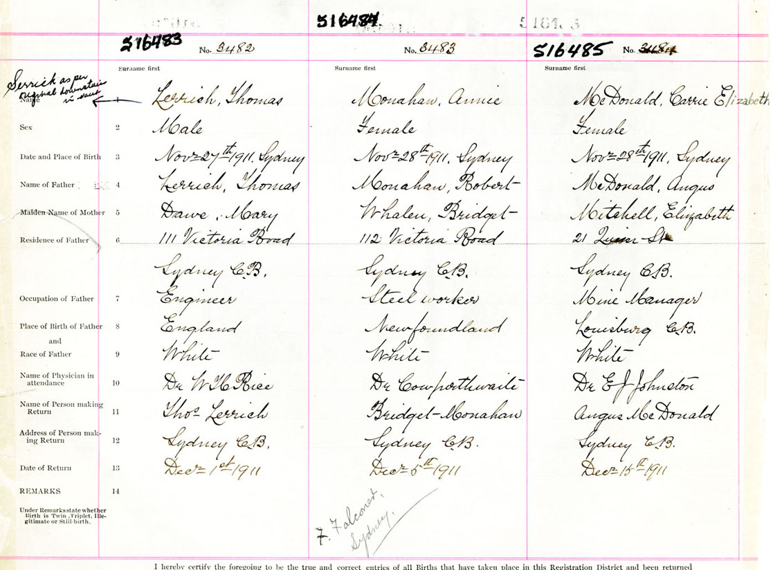 Female Birth Registration: Year: 1911 number: 51600485