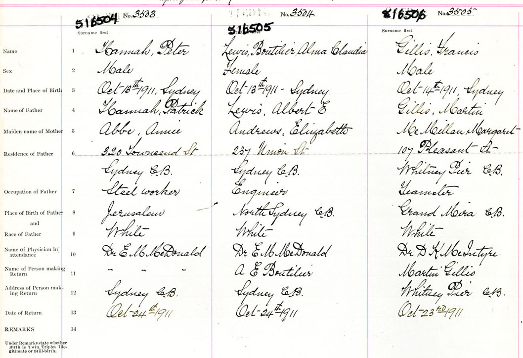 Male Birth Registration: Year: 1911 number: 51600506