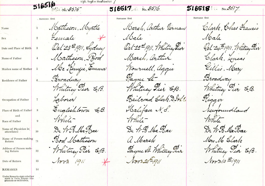 Male Birth Registration: Year: 1911 number: 51600518