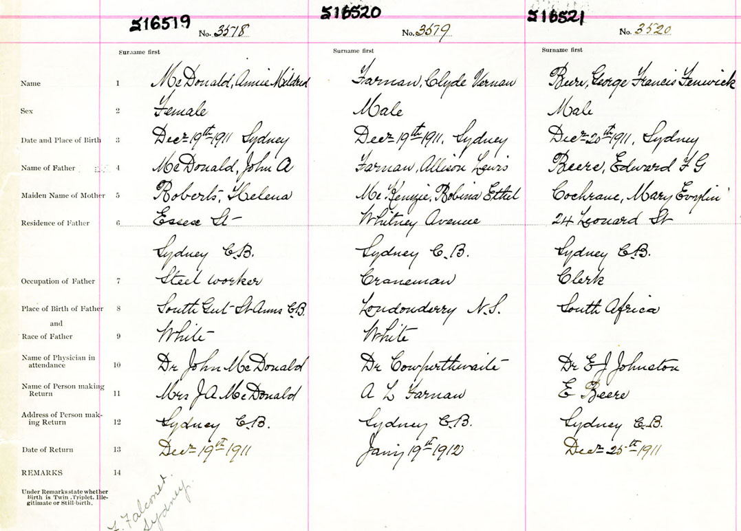 Male Birth Registration: Year: 1911 number: 51600521