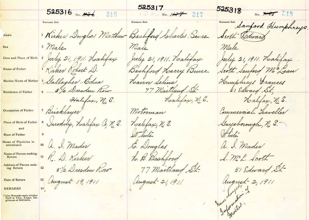 Male Birth Registration: Year: 1911 number: 52500316