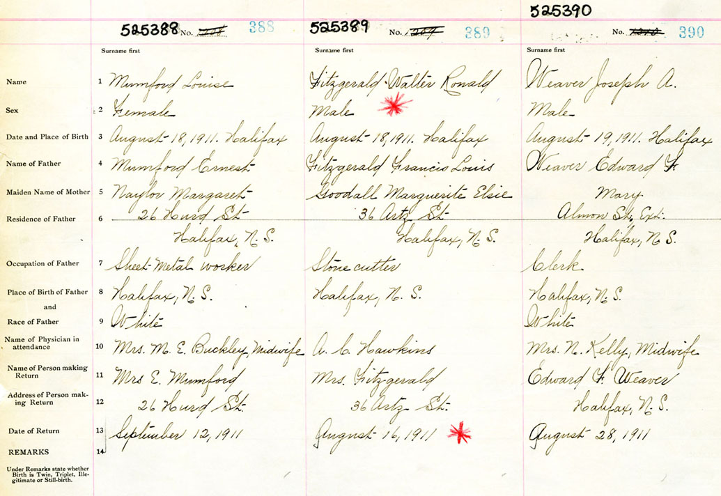 Male Birth Registration: Year: 1911 number: 52500390