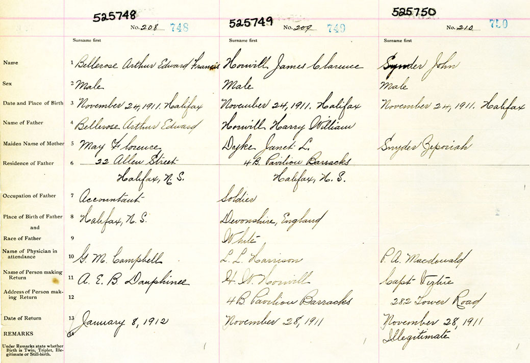 Male Birth Registration: Year: 1911 number: 52500748