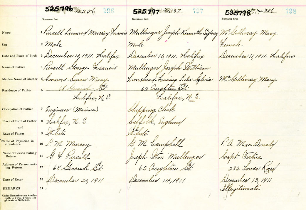 Male Birth Registration: Year: 1911 number: 52500796