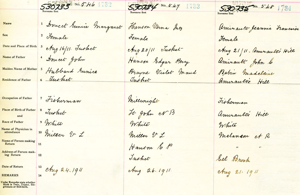 Female Birth Registration: Year: 1911 number: 53000735