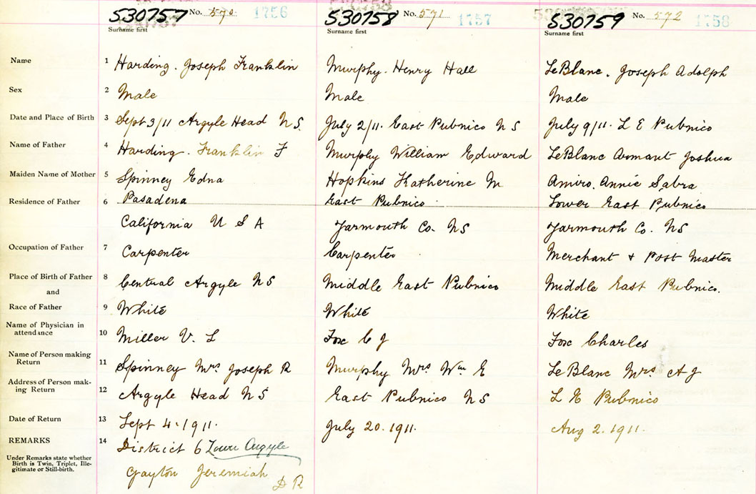 Male Birth Registration: Year: 1911 number: 53000759