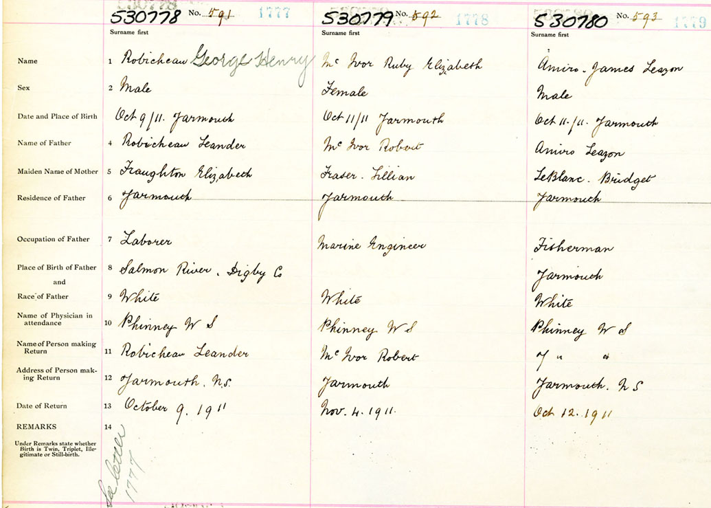 Male Birth Registration: Year: 1911 number: 53000780