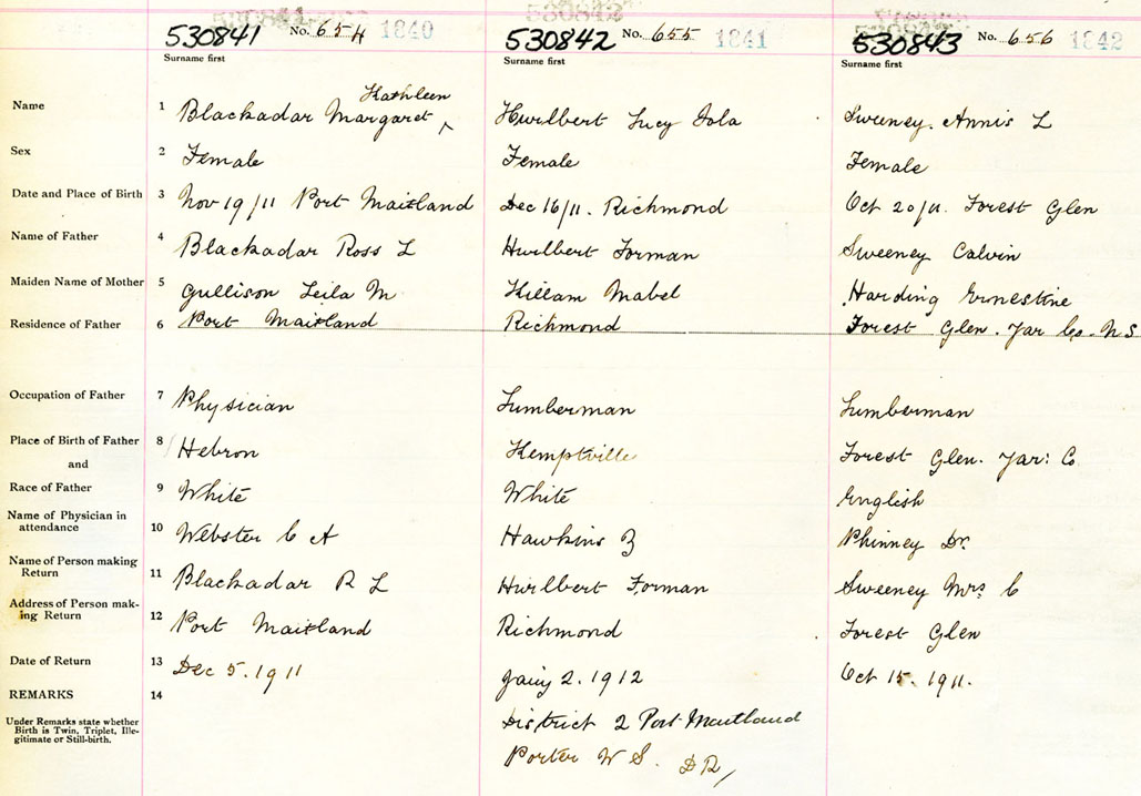 Female Birth Registration: Year: 1911 number: 53000841