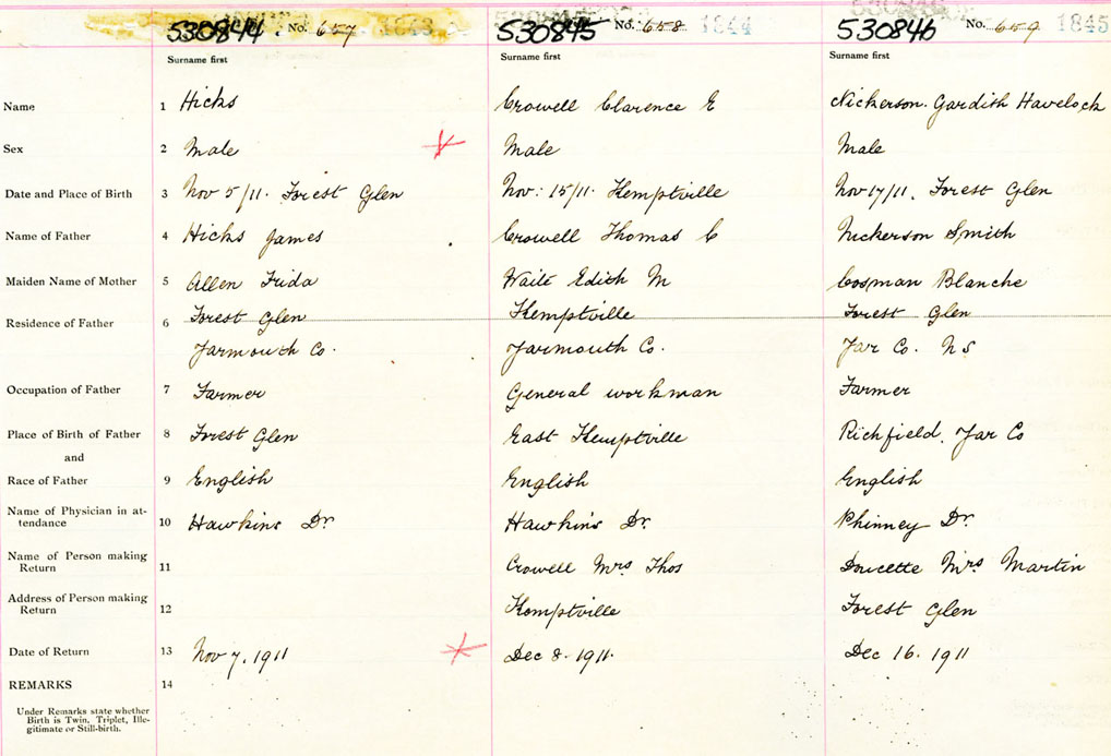 Male Birth Registration: Year: 1911 number: 53000844