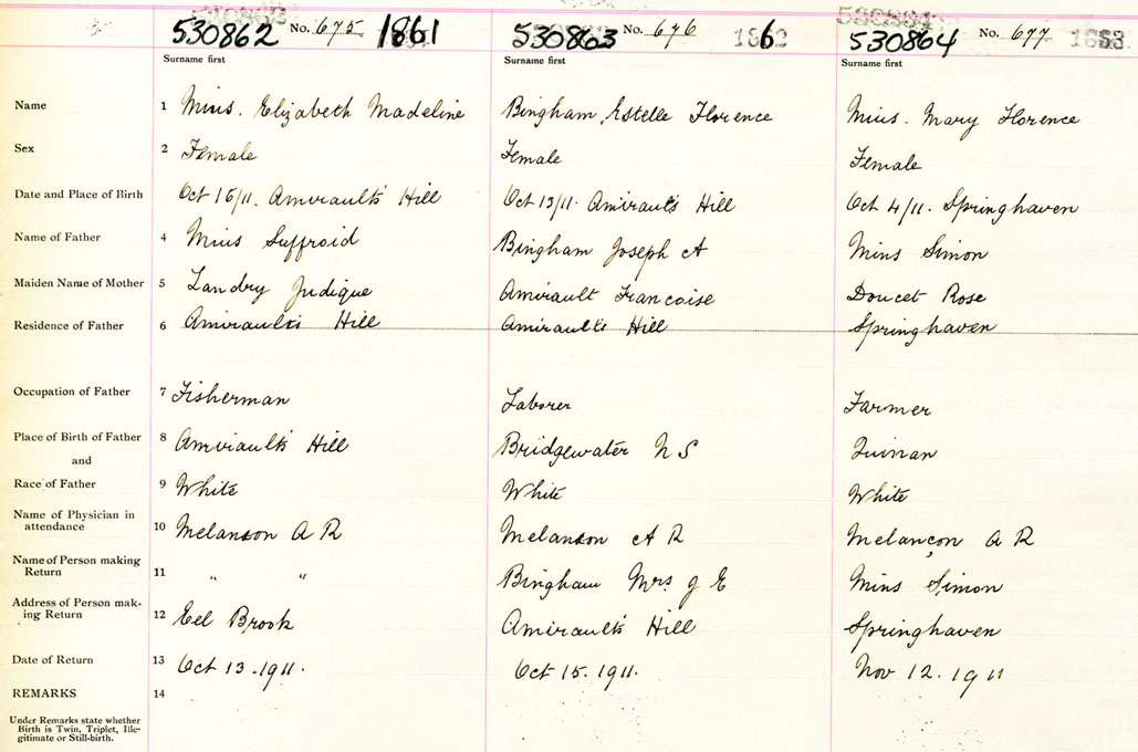 Female Birth Registration: Year: 1911 number: 53000862