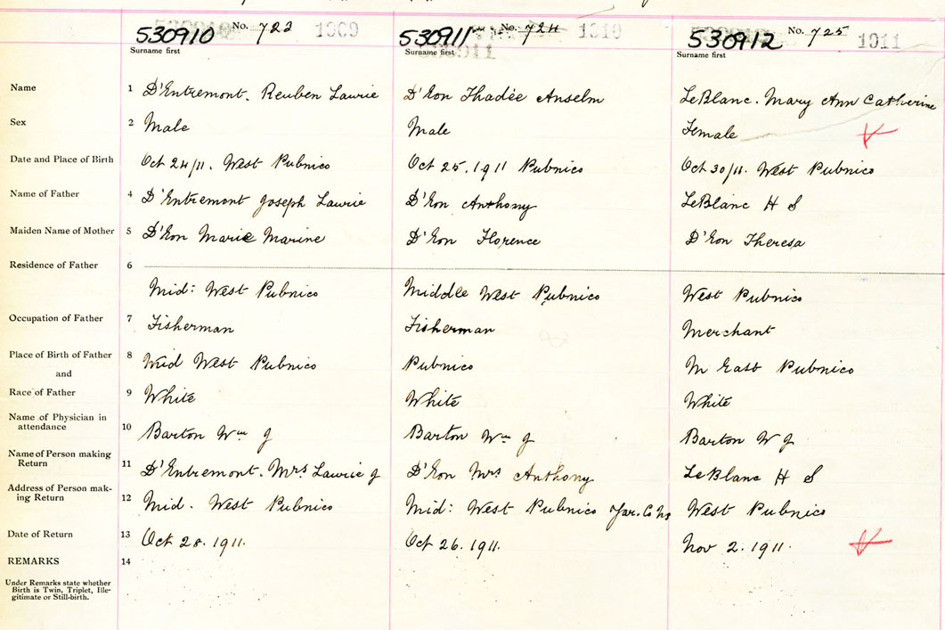 Male Birth Registration: Year: 1911 number: 53000910