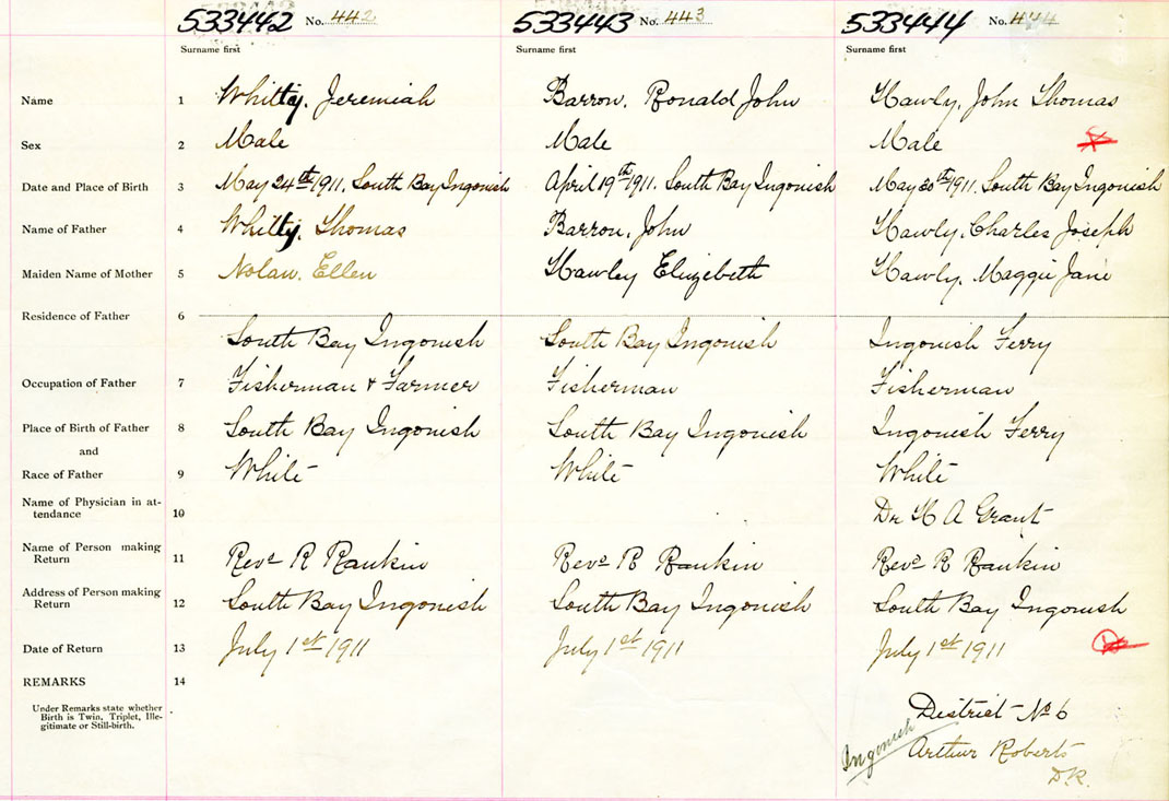 Male Birth Registration: Year: 1911 number: 53300442