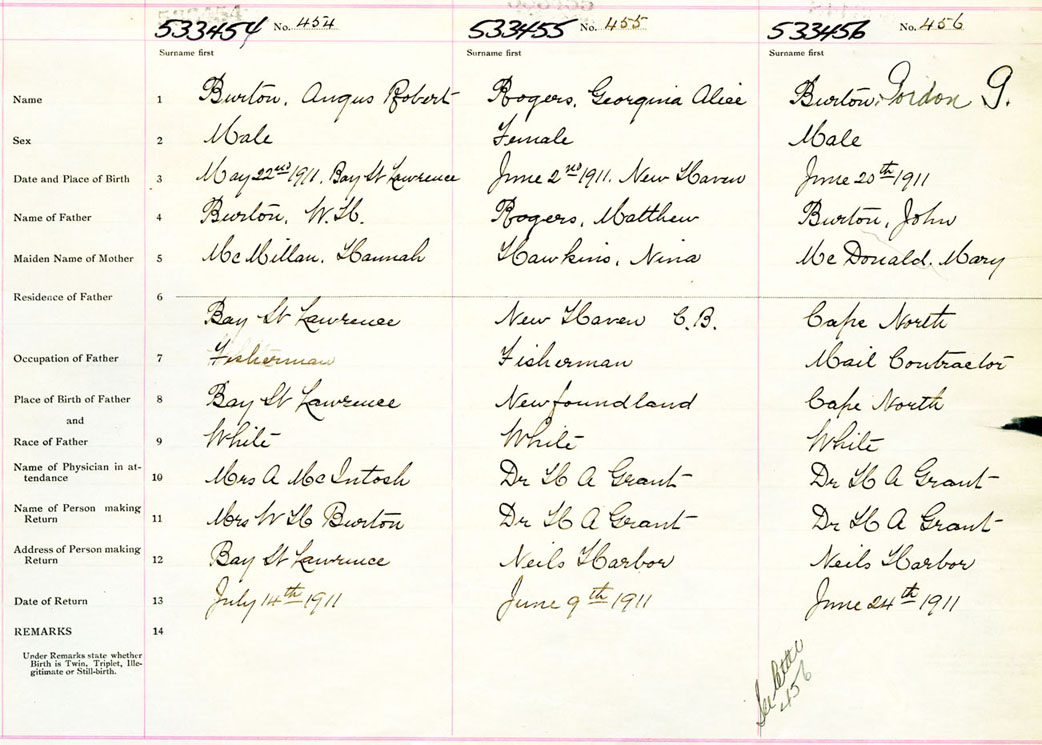 Male Birth Registration: Year: 1911 number: 53300454