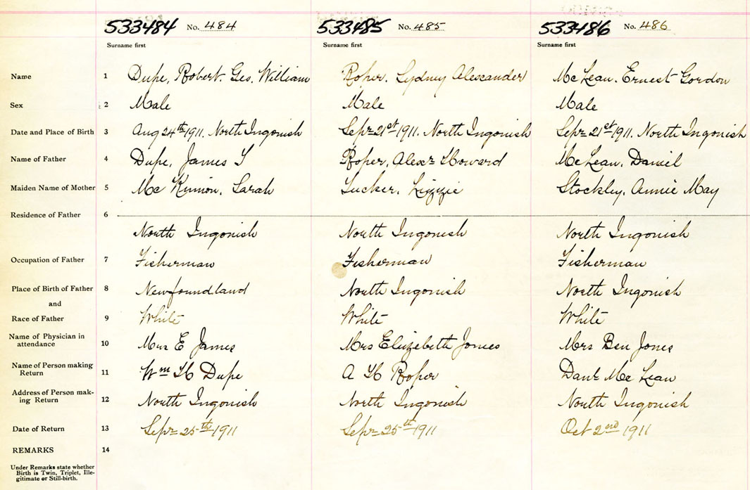 Male Birth Registration: Year: 1911 number: 53300484