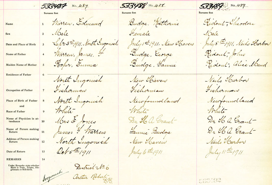 Male Birth Registration: Year: 1911 number: 53300487