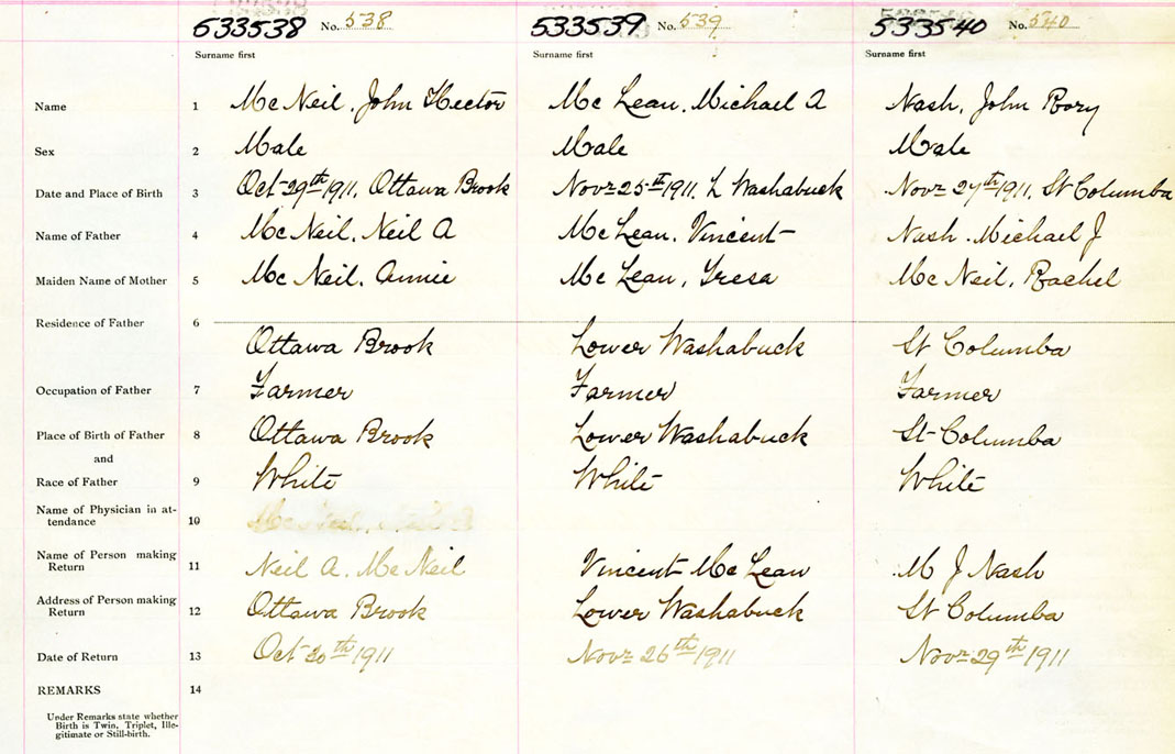 Male Birth Registration: Year: 1911 number: 53300538