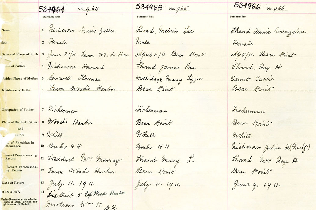 Female Birth Registration: Year: 1911 number: 53400966