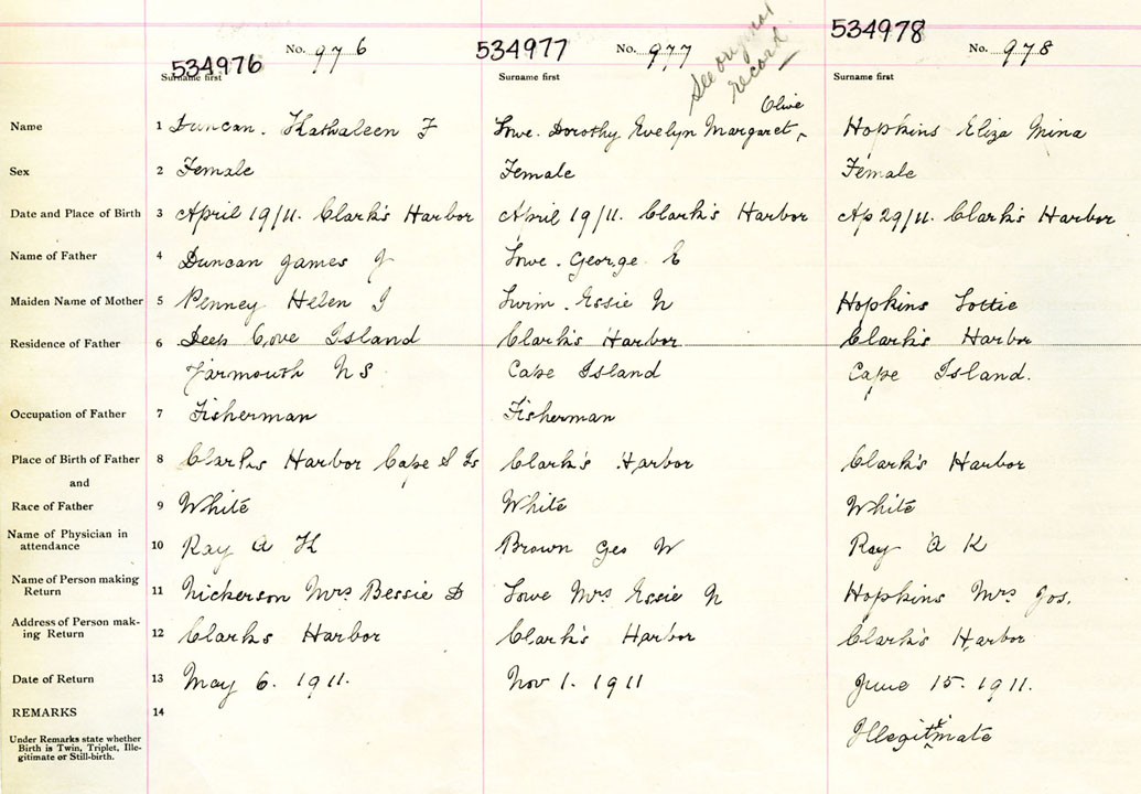 Female Birth Registration: Year: 1911 number: 53400978