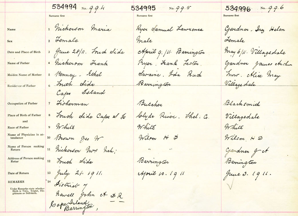 Female Birth Registration: Year: 1911 number: 53400996