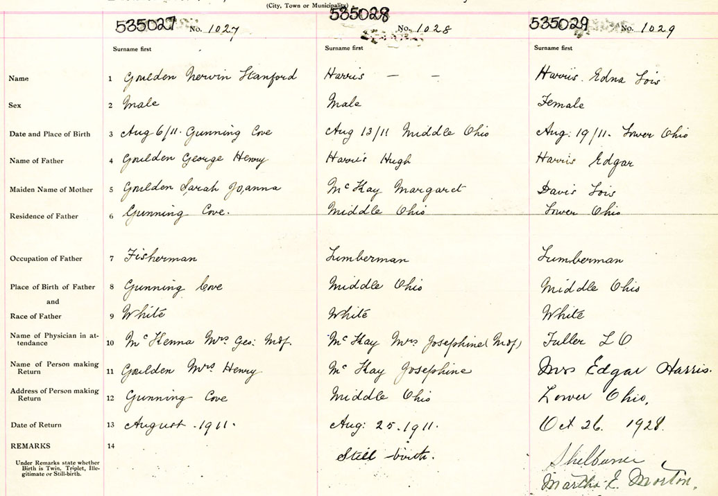 Female Birth Registration: Year: 1911 number: 53500029