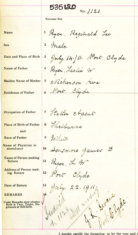 Male Birth Registration: Year: 1911 number: 53500120