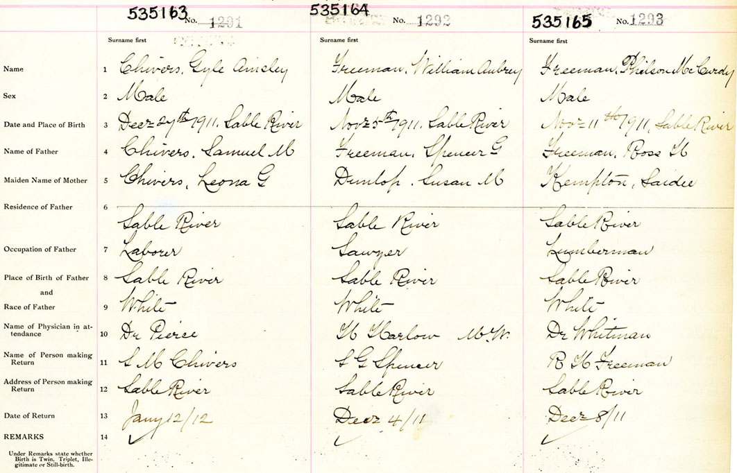 Male Birth Registration: Year: 1911 number: 53500163