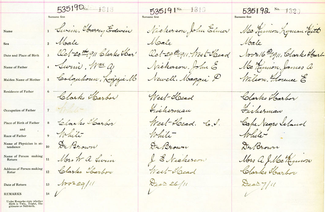 Male Birth Registration: Year: 1911 number: 53500190