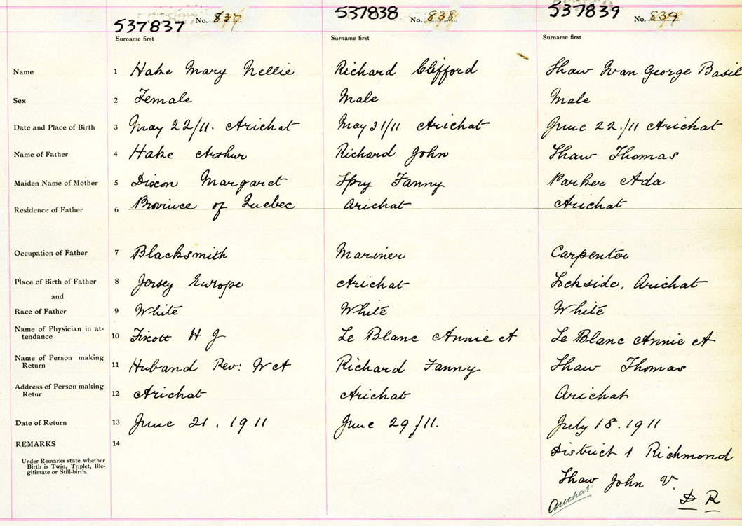 Female Birth Registration: Year: 1911 number: 53700837