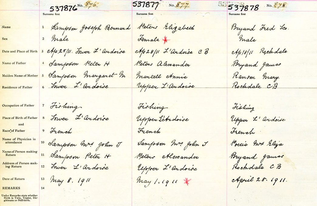 Male Birth Registration: Year: 1911 number: 53700876