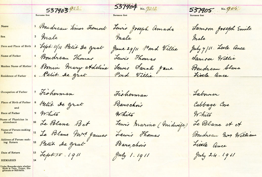 Male Birth Registration: Year: 1911 number: 53700903