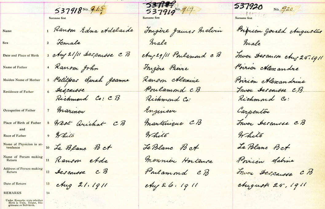Female Birth Registration: Year: 1911 number: 53700918