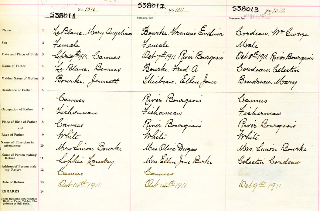 Female Birth Registration: Year: 1911 number: 53800011