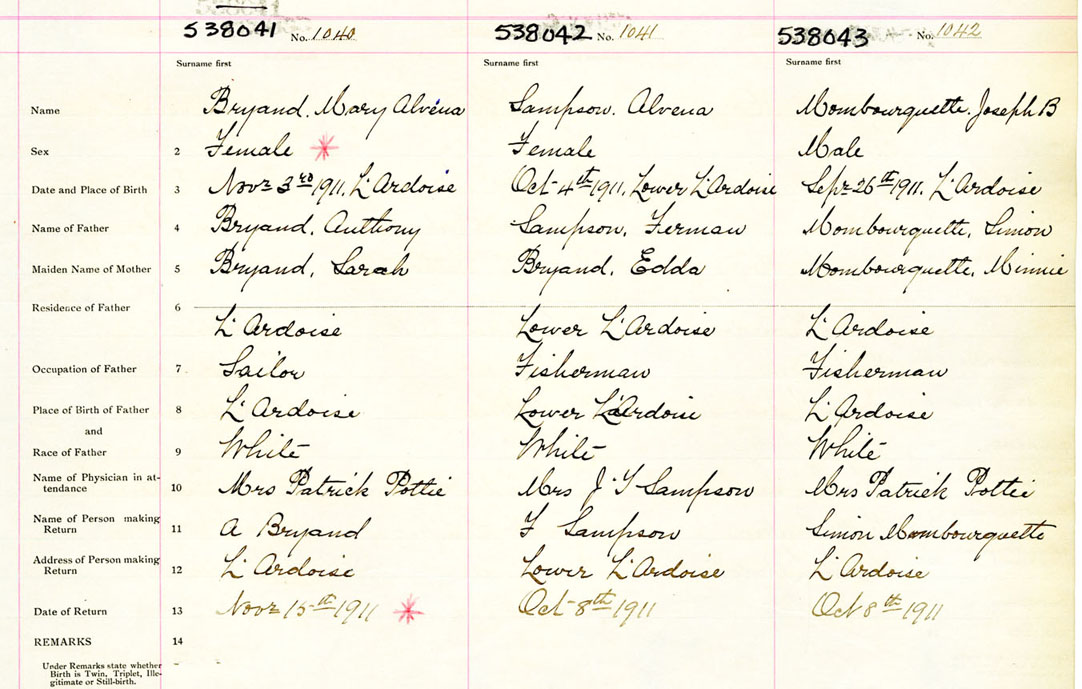 Female Birth Registration: Year: 1911 number: 53800041