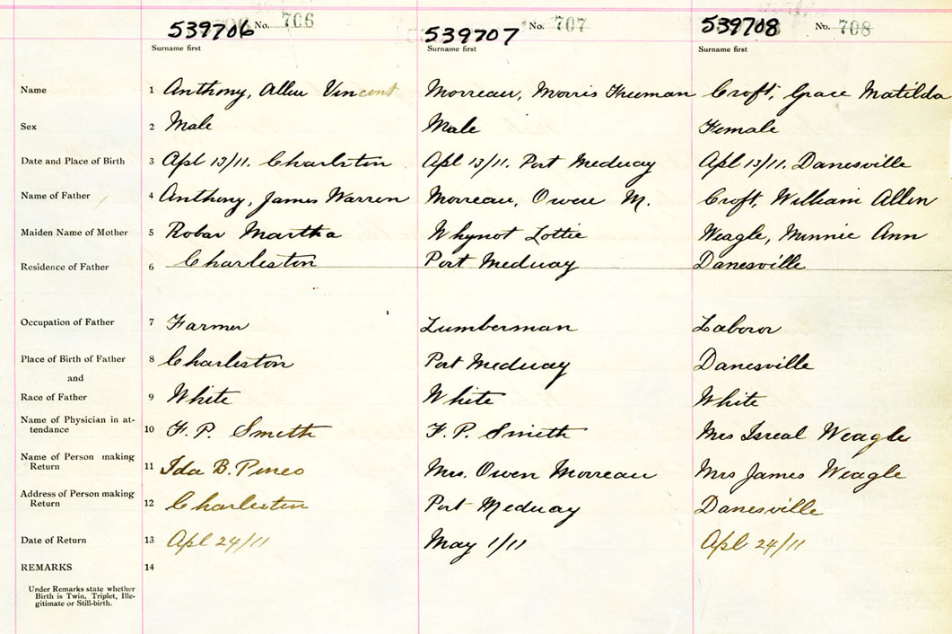 Female Birth Registration: Year: 1911 number: 53900708