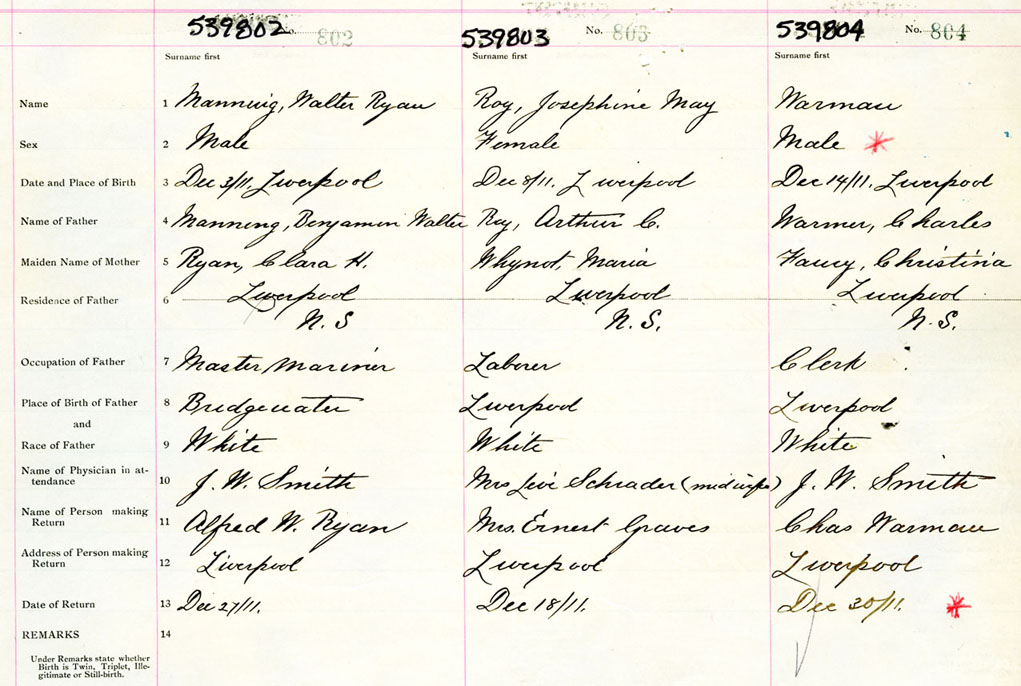 Male Birth Registration: Year: 1911 number: 53900804