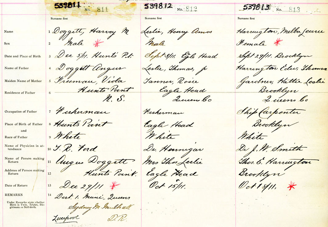 Female Birth Registration: Year: 1911 number: 53900813