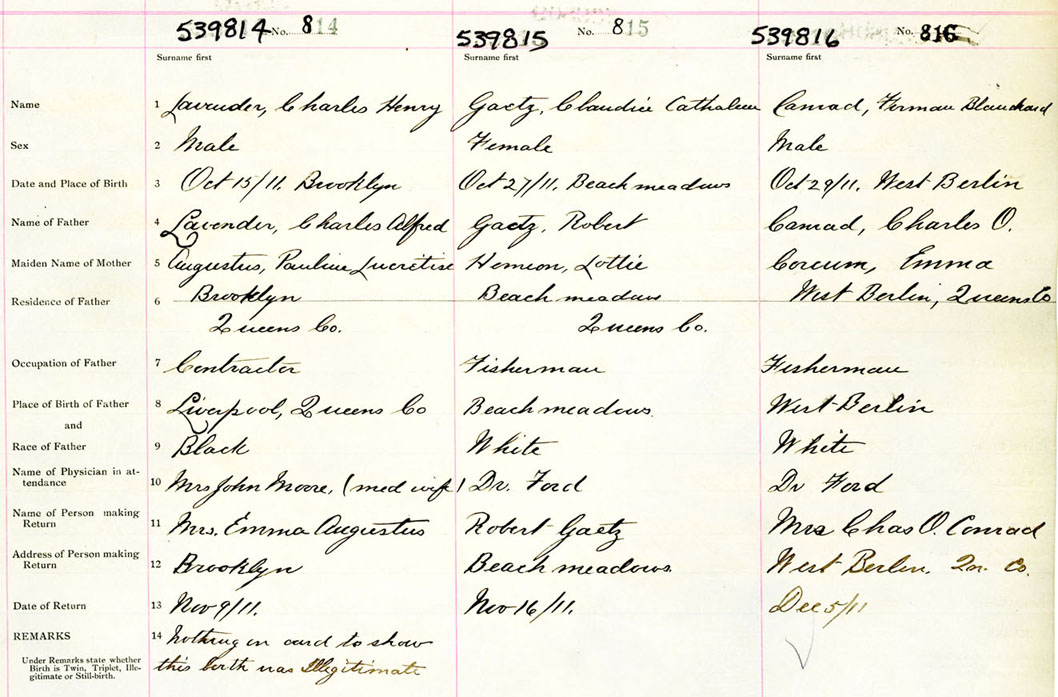 Male Birth Registration: Year: 1911 number: 53900816